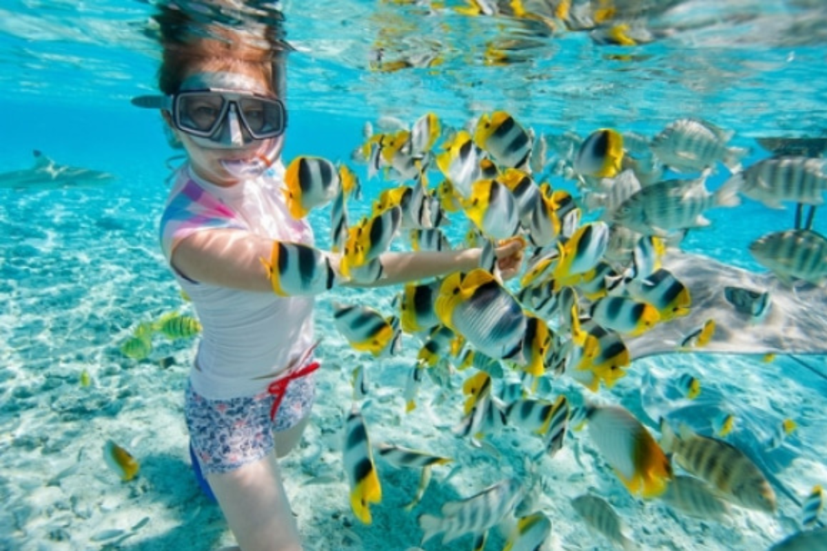Snorkeling in the area around the kelong is very suitable for beginners and families because the sea currents are relatively calm, and the depth is safe for relaxed exploration. Tourists can enjoy the beauty of live corals, various small tropical fish, and sometimes even get a close look at starfish or anemones.